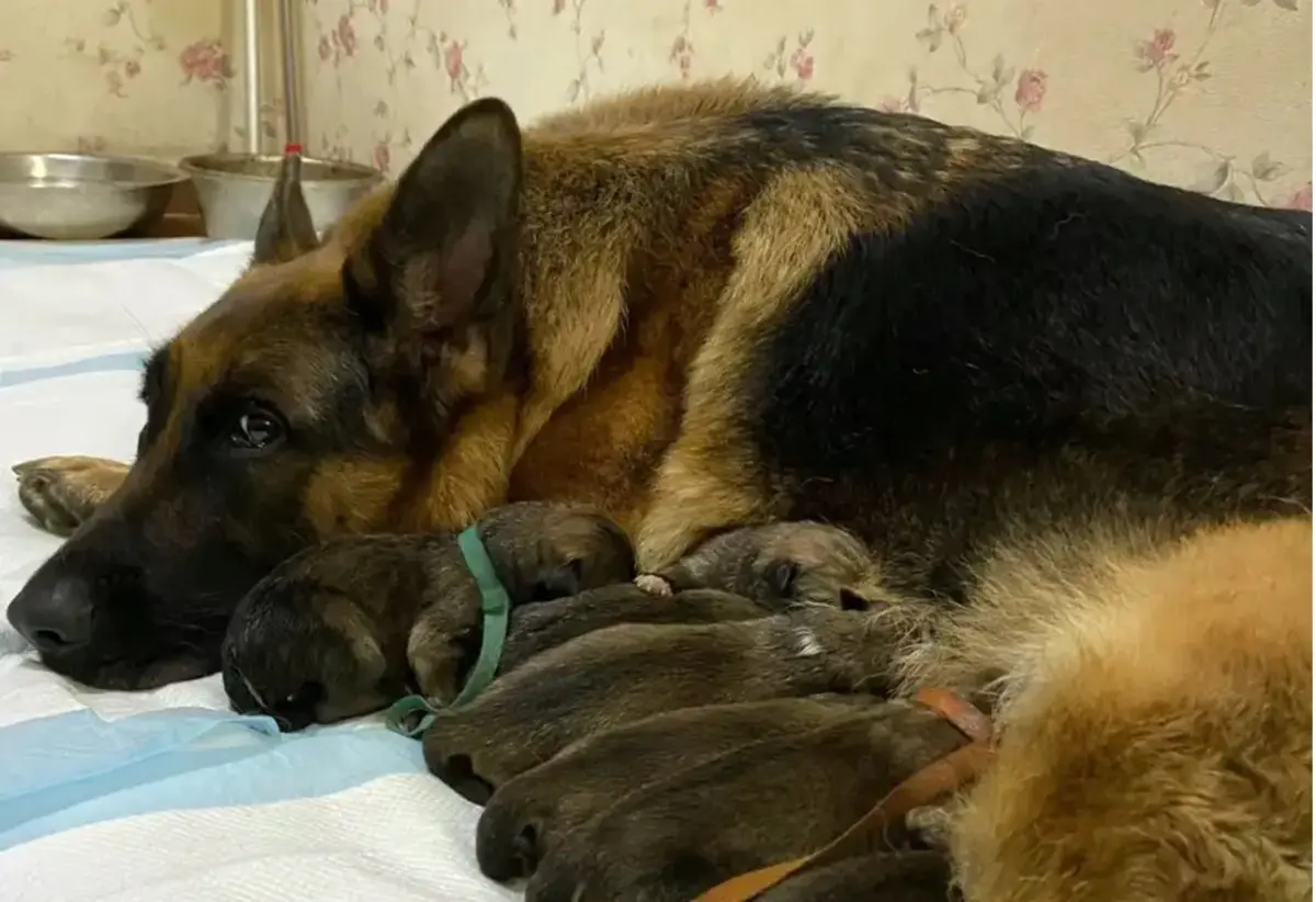 中國有民眾家中養了一隻雌性德國牧羊犬,某天突然被發現肚子越來越大,經過檢查才發現竟還有身孕,最終生下8隻狗寶寶,而生父一查竟是秋田犬。有趣的是,8隻寶寶生下來...
