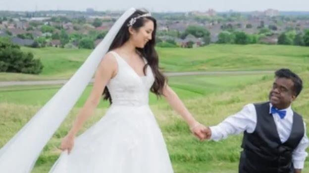 真愛面前,身高只是個數字!患有侏儒症的多倫多工程師蒂莫西(Timothy Muttoo),雖然身高只有120公分,卻憑藉自信娶回163公分的正妹老婆安妮塔(Anita Wing Lee)。這對身高差高達43公分的夫妻,婚照在網路瘋傳後瞬間成了全球紅人。蒂莫西笑稱想追到心儀對象不一定要發動猛烈攻勢,他以自身經驗建議缺乏安全感的男性,友誼才是通往真愛的最佳捷徑。