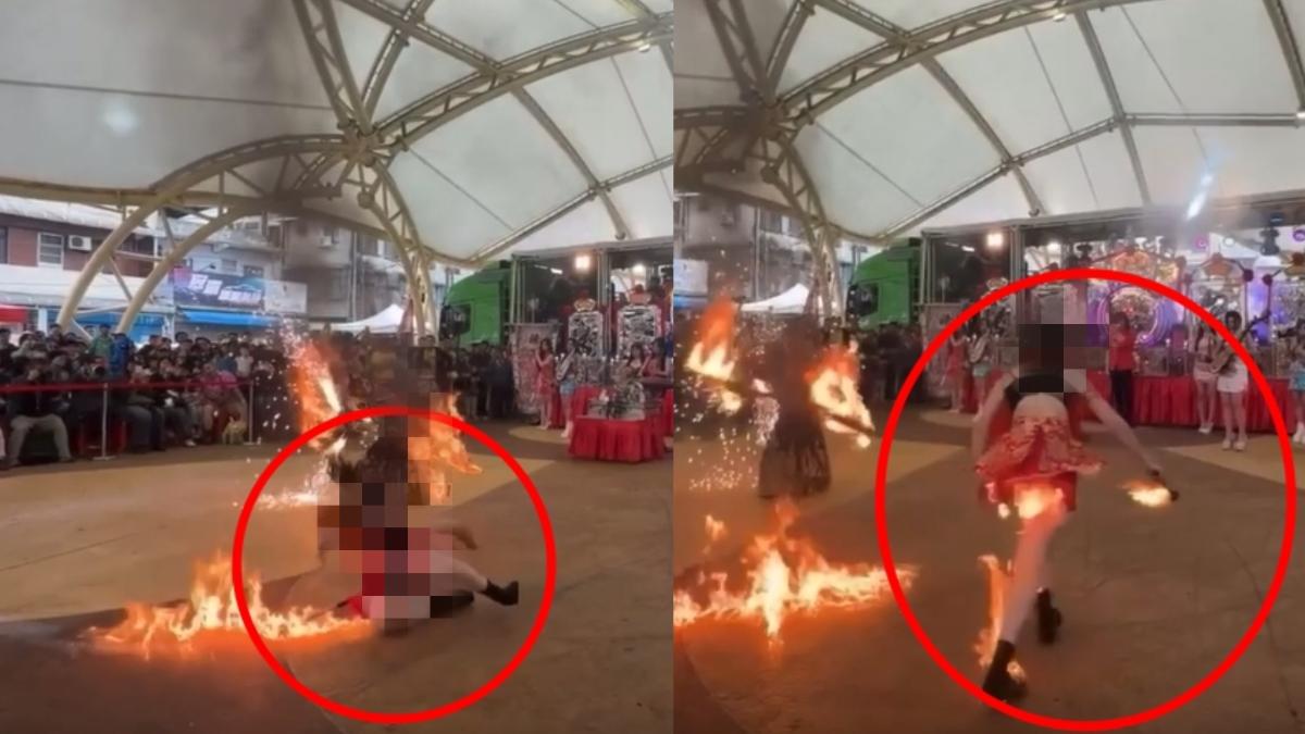 桃園藝文廣場於4月4日舉辦「2026桃園信仰生活節-神遊春巡」活動,其中一段火舞表演卻出了意外。當時一名女演員正要點火時,卻不慎滑倒,導致裙擺著火,下半身遭烈火纏身,緊急到一旁處置,畫面相當驚悚。對此,舞團曝光該名女演員最新傷況,正進行傷口照護無大礙,未來將強化天候與場地條件評估機制。