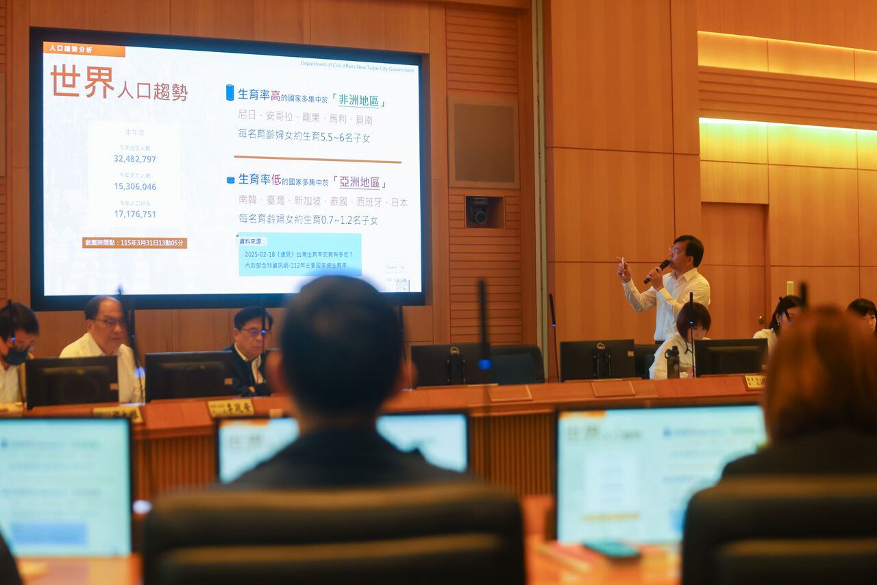 面對全國少子女化趨勢日益嚴峻,新北市政府民政局長林耀長今(1日)於市政會議進行「少子女化-從搖籃出發的安心守護網」專題簡報,從全球與國內人口趨勢切入,說明新北在人口結構轉變下所面臨的挑戰,並提出跨局處整合推動婚育友善政策的具體成果。