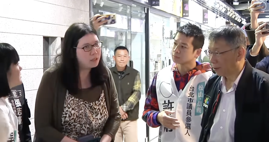農曆春節將至,民眾黨主席黃國昌、創黨主席柯文哲今(31)日陪同議員參選人前往南門市場發春聯,並接受媒體聯訪。不過聯訪結束後,一名自稱是柯文哲學妹的女子上前陳情,表示自己就想問一句:「為什麼我買不起台北市