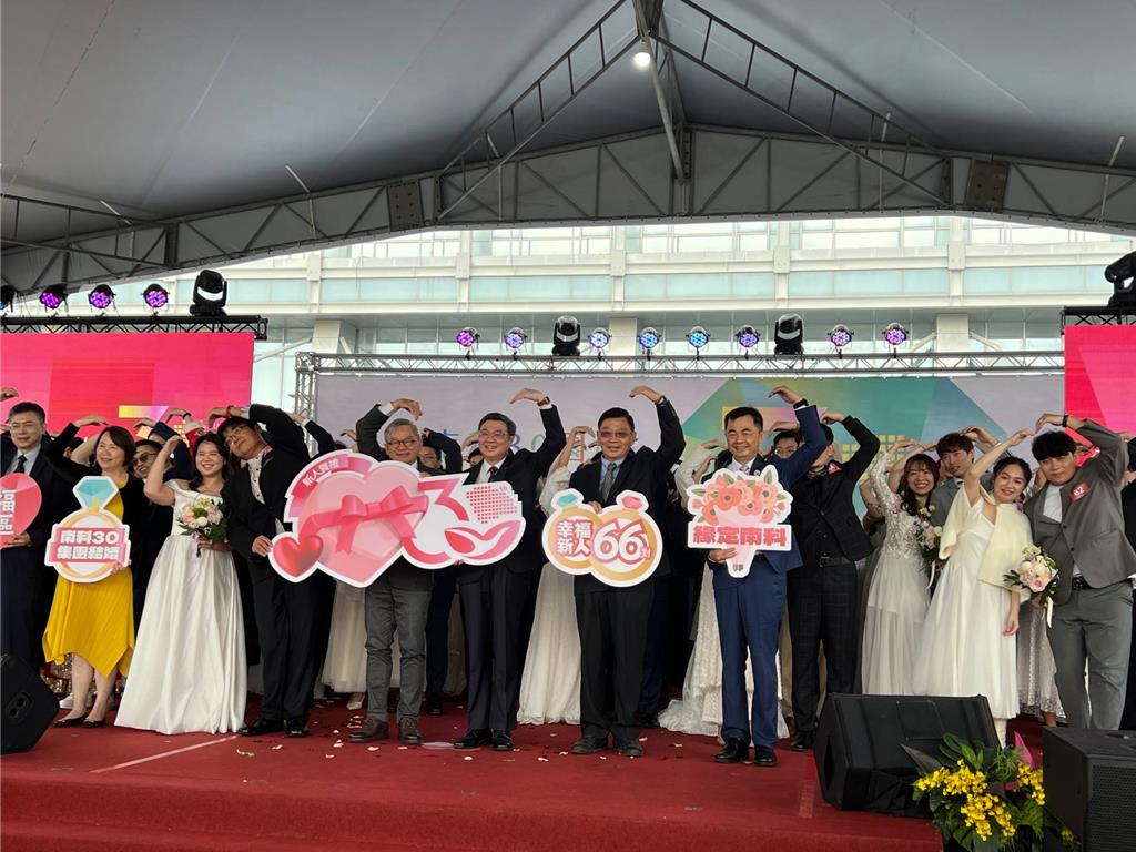行政院長卓榮泰今天到南科參加南科30集團結婚為66對南科新人祝福,除了鼓勵台積電員工佔多數的新人要「高良率」增產報國,強...
