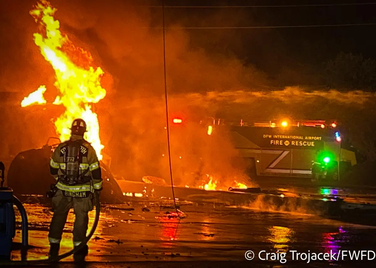 美國德州5日傳出一起油罐車起火事故,一輛運送汽油的油罐車在與另一輛車相撞並撞倒電線後,爆發猛烈火勢,導致該名卡車駕駛性命垂危。