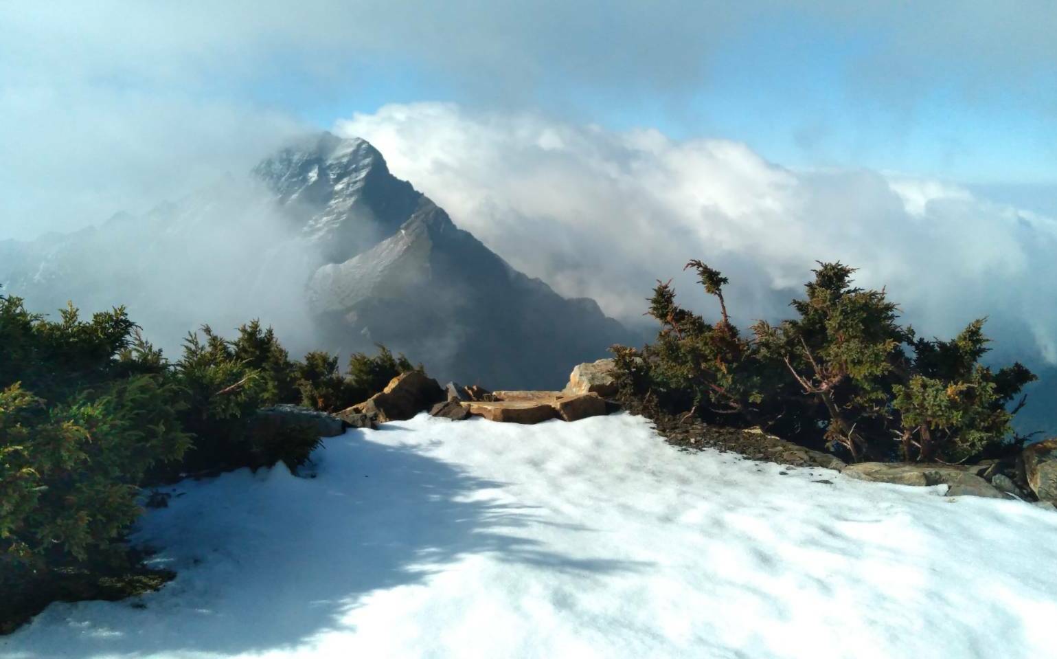 清明時節雨紛紛,這幾日除了平地時常有大小雨,而玉山也在昨日傍晚再度降下了四月雪,因為受到強大水氣與低溫影響,還出現「雨夾雪」的景象,目前積雪累積厚度達2公分,清晨日出時分群峰呈現銀白世界的唯美景致。今天適逢清明節,玉山再度降雪,根據玉山氣象站觀測資料指出,此次降雪約在昨日傍晚5點55分開始,因為正值