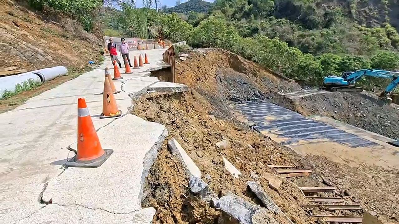 【記者鮮明/台中報導】台中市霧峰區桐林里暗坑巷去年7月因豪大雨造成路基嚴重沖毀,市府及中央進行復建工程,沒想到還沒完工,昨天一場大雨又把剛填好的路基沖掉了,造成交通中斷。市議員張芬郁今(5日)上午到場勘察,呼籲市府趕在5月底雨季來臨前完工,並提醒民眾下雨時盡量不要前往山區,以免發生危險。