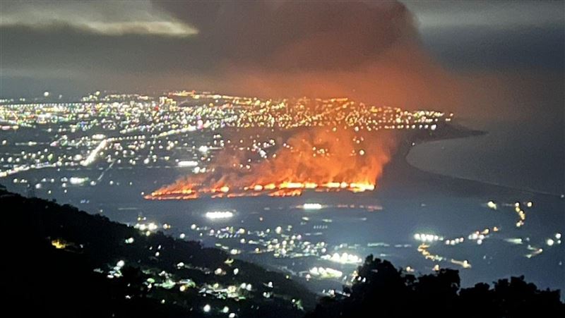 台東知本溪出海口、過去捷地爾預定地昨晚發生雜草火警,強風助長火勢,消防員無法靠近滅火,火勢延燒約20小時,今(27)日中午由空勤直升機協助撲滅殘火,總燃燒面積約61公頃。