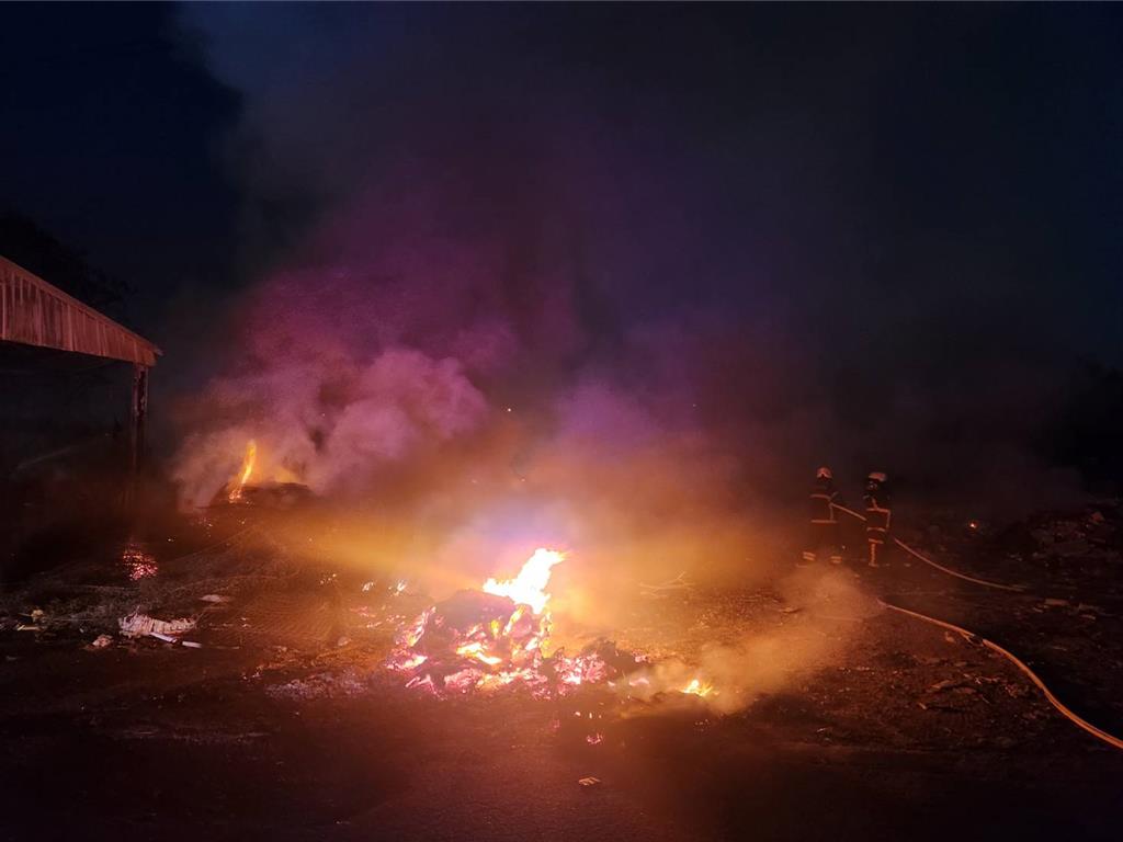 國道6號旁驚見沖天惡火!南投草屯垃圾場資源回收區,今(9)日傍晚5時37分突然陷入火海,火勢猛烈、黑煙狂竄,遠在國道上即可見驚人火舌與濃密煙柱,景象駭人。警消獲報急派多個分隊全力灌救,雖初步控制火勢,但直