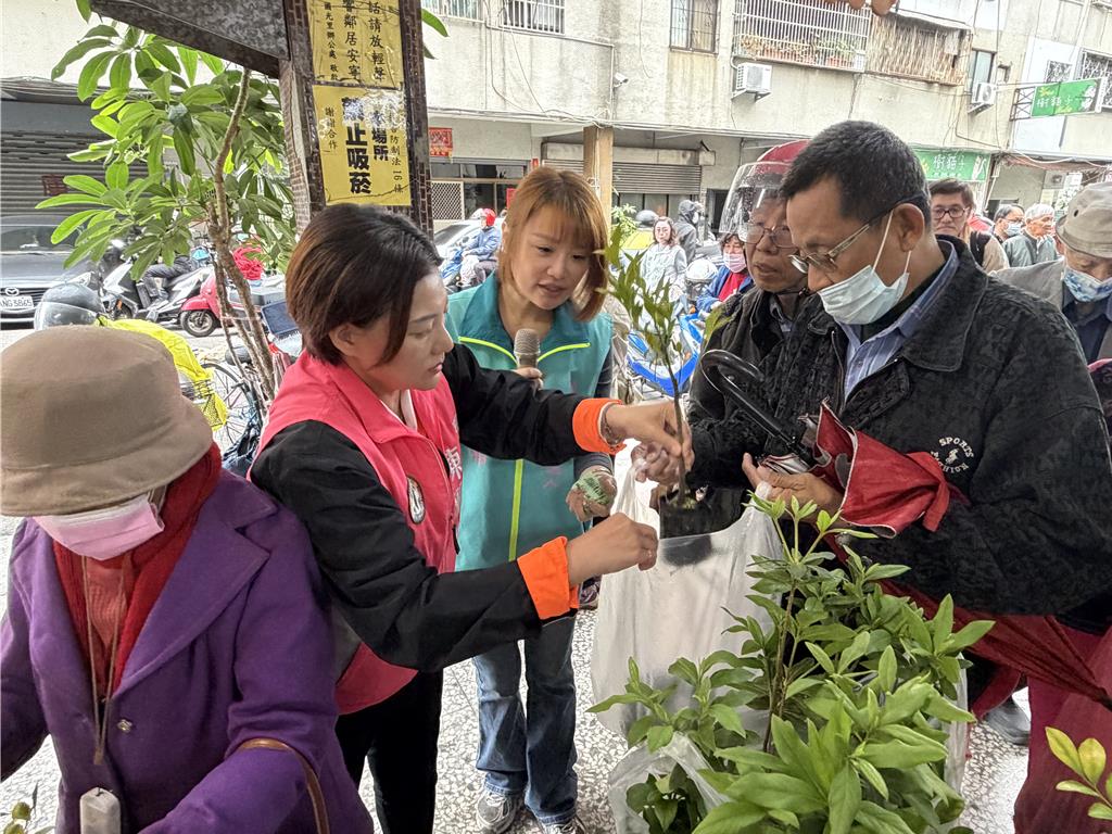 適逢3月12日植樹節,台中市議員陳雅惠10日在服務處前舉辦贈苗活動,準備桂花、七里香等6種共700株樹苗免費發送,並推出「5顆廢乾電池兌換1包培養土」的環保活動,吸引逾300名民眾到場參與。陳雅惠表示,希望透過贈苗