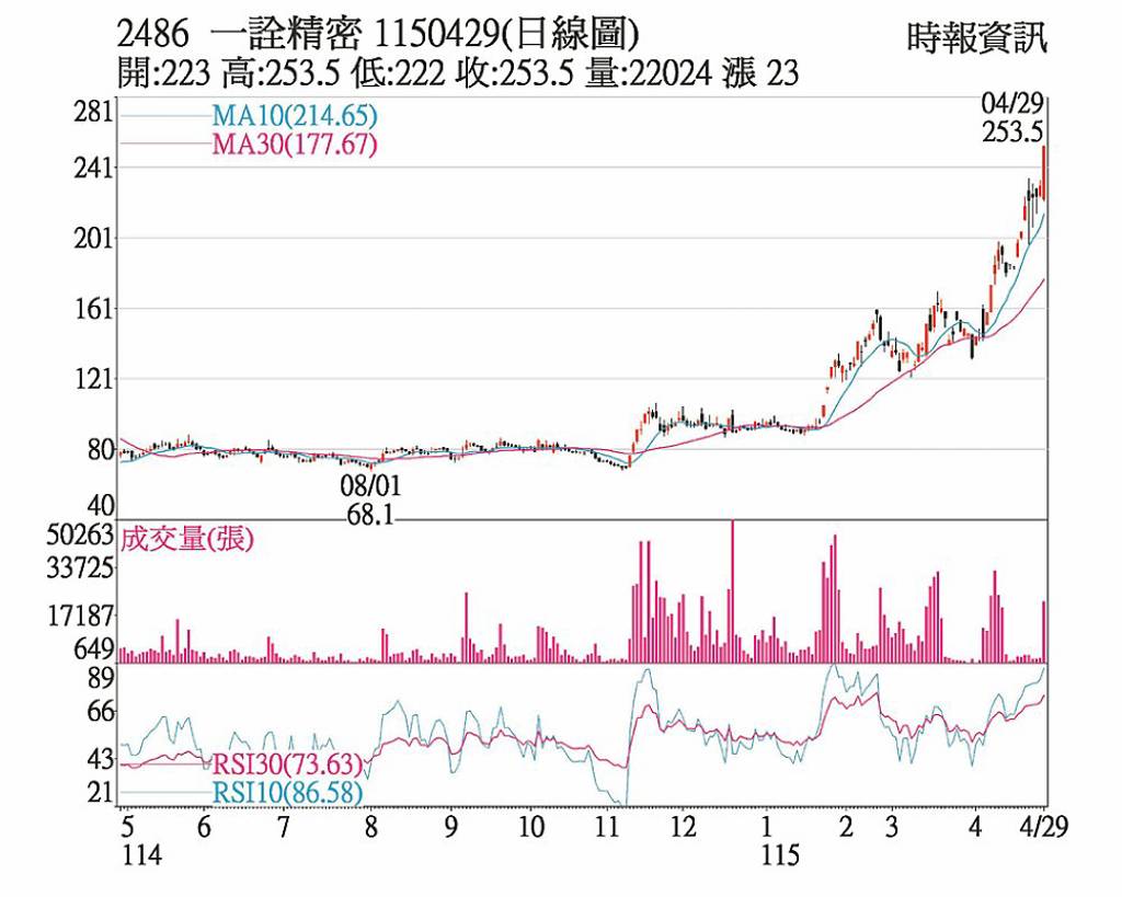 台股昨(28)日漲多修正,雖然台積電回檔休整,不過聯發科(2454)卻接棒多頭人氣大旗,股價開高走高,終場大漲180元、收2,615元,再創歷史新高紀錄,表現相當亮麗搶眼。
