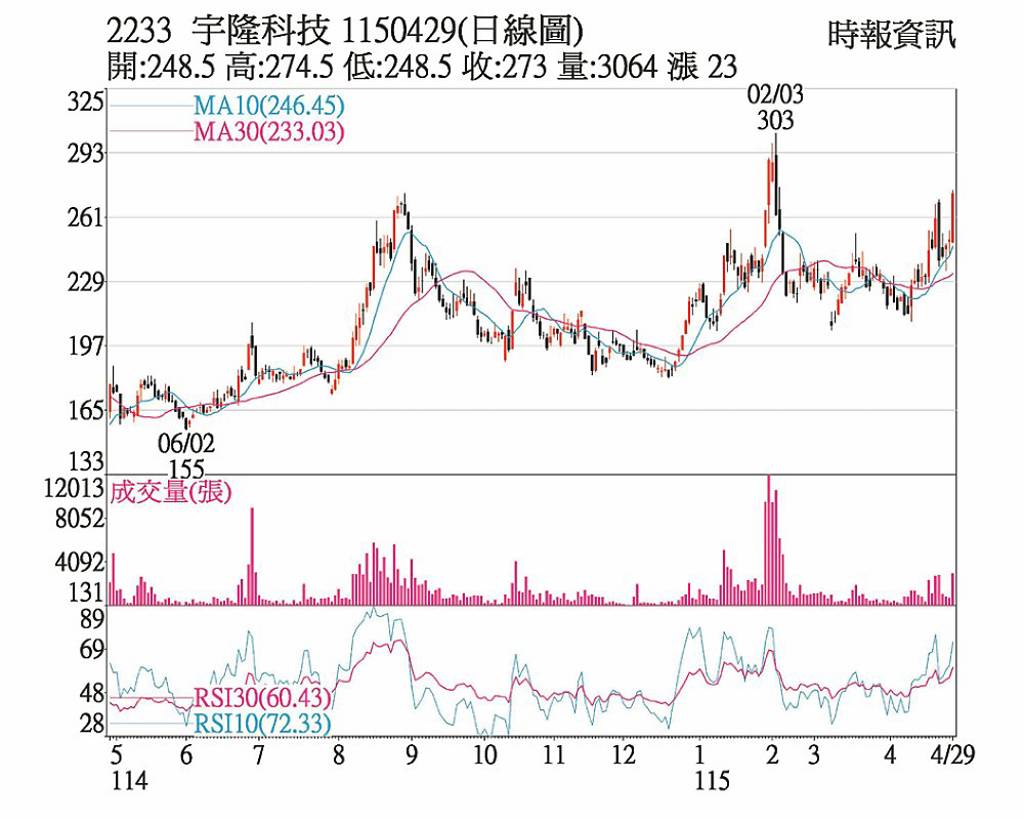 宜鼎(5289)3月營收56.72億元,創新高,月增35.8%,年增484.8%;今年首季營收131.82億元,為歷來單季最佳,季增174%,年增逾四倍。在記憶體價格漲勢持續下,法人預測未來NAND