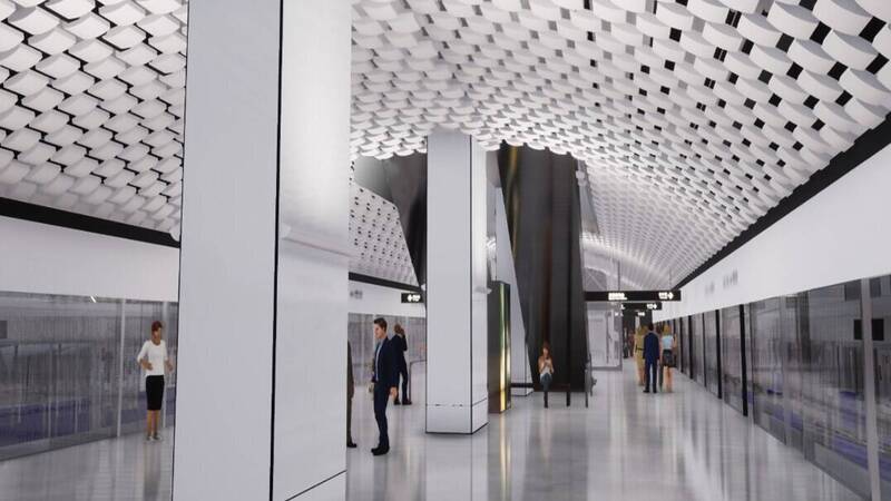 桃園機場第三航廈北登機廊廳預計本月25日正式啟用,象徵第三航廈離全面啟用已越來越近。交通部鐵道局說明,第三航廈的正下方還有一個令人期待的工程,那就是肩負未來國門形象的捷運站「機場捷運A14站」。鐵道局說明機場捷運A14站設計小巧思,透過高密度柱列形塑出具儀式感的動線尺度,搭配原創天花單元,呼應第三航廈曲弧天花的空間語彙,讓旅客踏入車站後可感受到與航廈的一致性設計。