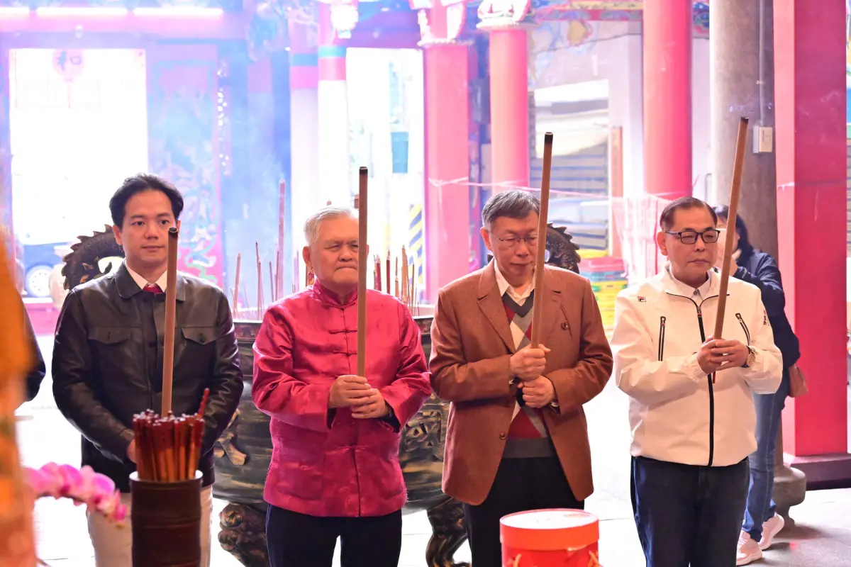 新竹縣副縣長陳見賢應新埔廣和宮主委潘鵬仁邀請,與民眾黨創黨主席柯文哲、新竹市副市長邱臣遠合體拜年,互動熱絡。陳見賢社群粉絲專頁今(18)日發佈在廣和宮的「藍白...