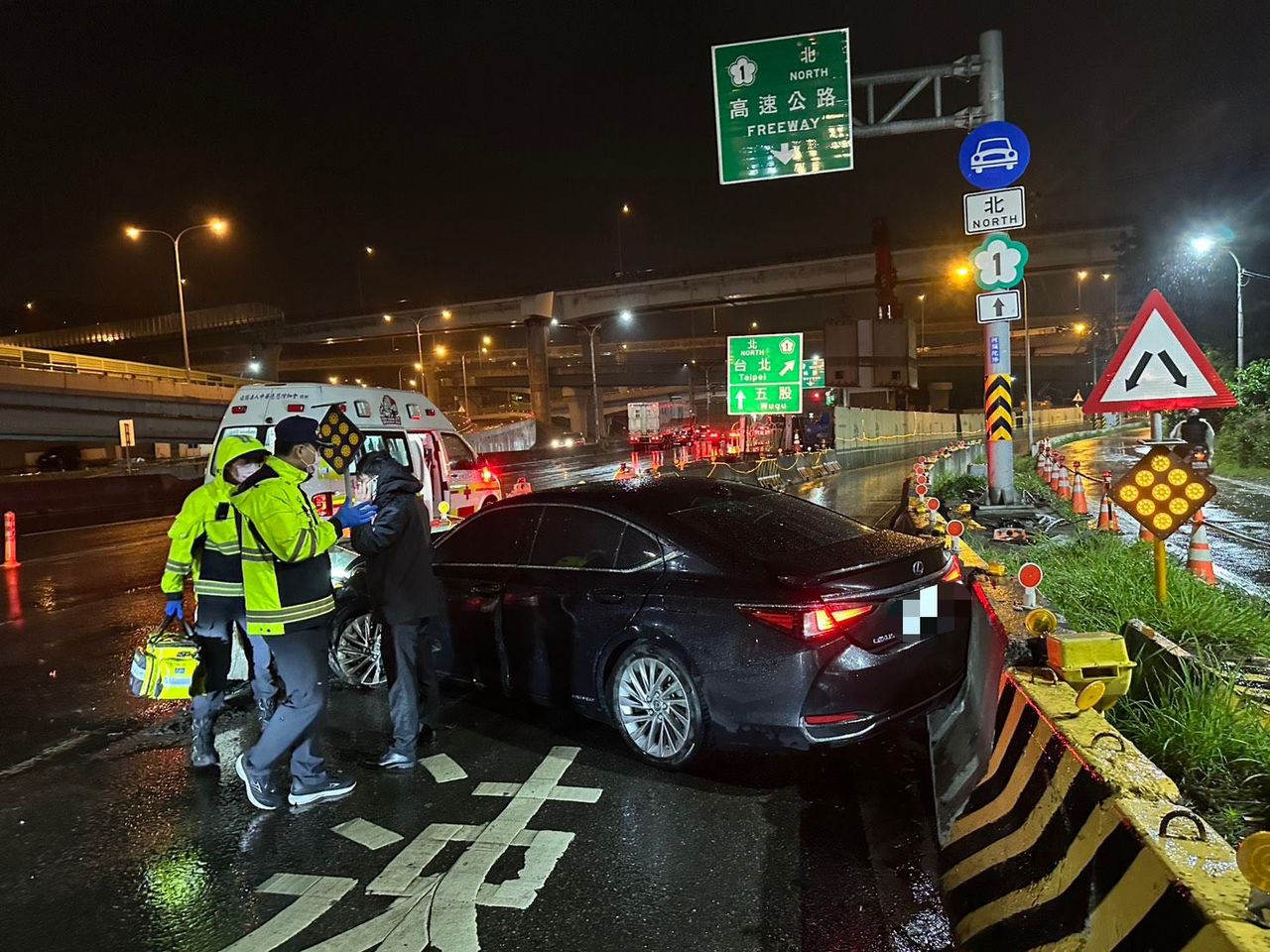 【記者曾佳俊/新北報導】新北市五股區今(10)日凌晨發生一起自撞車禍,一名專職機場接送的30歲潘姓男子,駕車行經五股交流道北上入口匝道時,疑因天雨路滑不慎自撞分隔島,車輛隨後打橫卡在匝道口,一度影響車輛進出,所幸潘男僅四肢擦挫傷,送醫治療後並無大礙,目前已出院返家休養。