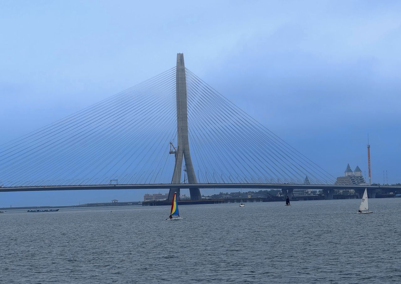 位在淡水河口的淡江大橋,因人行道欄杆導致有極明顯的嗡嗡風切聲,交通部公路局今(16日)宣布,已加裝1200公尺消音膠條,有效降低風噪聲。公路局說明,淡江大橋人行道欄杆在去年12月起陸續安裝,並在今年1月完成大面積施作後,在東北季風期間在特定風況下出現風切聲,引發周邊居民反映。經公路局北區公路新建工程分局會同專業單位,進行現地勘查及風洞試驗後,已立即釐清是特定風速與風向條件下產生結構共振現象。