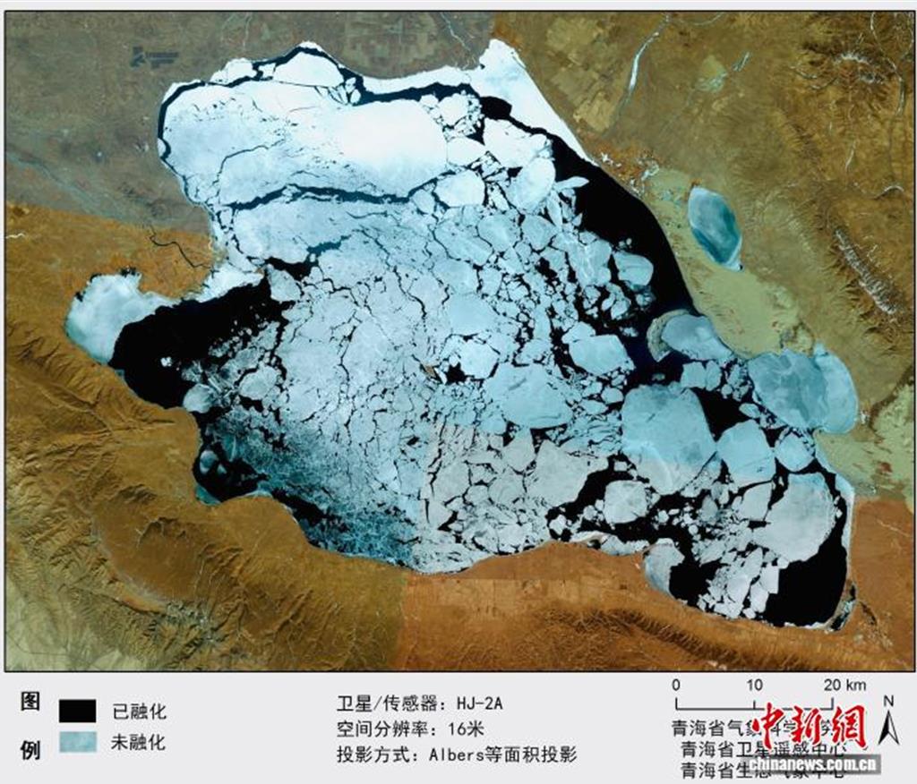 中新社報導,青海省氣象科學研究所18日下午披露,最新遙感監測顯示,冰封一冬的大陸最大內陸鹹水湖--青海湖,於3月14日開始消融,較近十年平均提前14天。青海湖是大陸最大的內陸高原鹹水湖,維繫青藏高原東北部生態