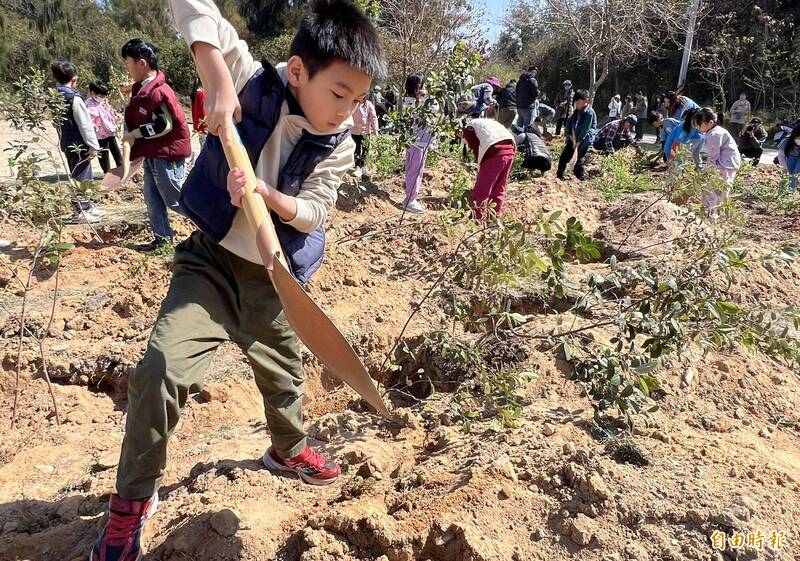 內政部國家公園署金門國家公園管理處今天在重要戰役史蹟的「船型堡」停車場辦理植樹活動,盼將原本空曠的土地,轉化為具有「複層林相」的綠地停車空間。金管處處長黃子娟與在地的金沙鎮山后社區居民、安瀾國小師生、保安警察第七總隊第四大隊約120人,共同種植包括繡球繡線菊、姚金孃、糯米條、白背木薑子、田代氏石斑木、海桐、豆梨與烏桕在內的208株各式喬木、灌木,也為「船型堡」的戰地景觀入口注入盎然生機。
