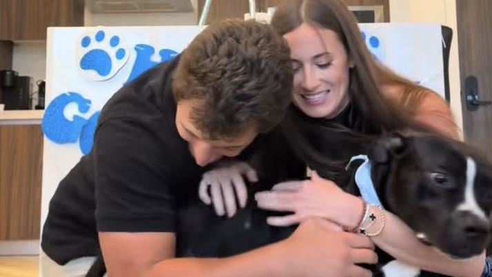 美國近期有段暖心影片瘋傳,有對夫妻日前前往寄養家庭探望4歲的黑狗「布魯斯」(Bruce)時,決定給牠一個驚喜,當夫妻倆當面告訴狗狗「你可以留下來當我們的家人」時,「布魯斯」不僅撲到2人懷中,又瘋狂搖動尾巴,一家人相擁的樣子,令人感到暖心!