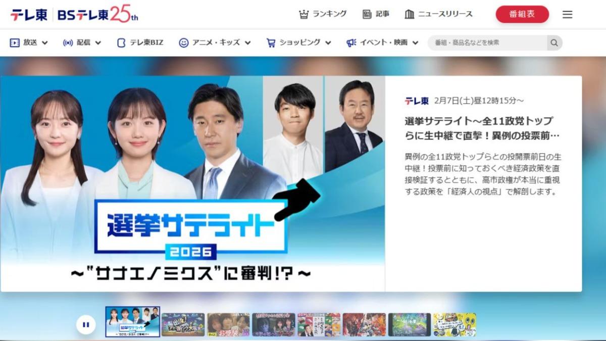 日本眾議院大選,週日就要投開票,各大電視台,無不使出渾身解數報導選情。就連地震來,都照樣播動畫片,走「獨自路線」的東京電視台(TV Tokyo),都在7日中午,推出選舉特別節目《選舉衛星(選挙サテライト)》。在特別節目中,東京電視台更罕見派主播與記者到場外連線,只是為了嚴格遵守日本的選舉法規,連線記者被要求隨身攜帶「消音開關」,只要連線時現場高呼特定候選人的名字,就會立刻切斷音訊。