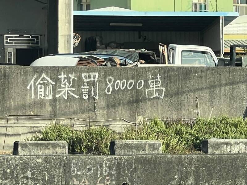 1名網友分享,在1塊馬路邊三角農地旁牆上,看到地主疑似使用油漆寫上警語「偷菜罰『80000萬』」,看到此景隨手拍下上傳至社群平台,PO文曝光後吸引不少網友議論。這名網友於「爆廢公社」臉書社團發文並附上1張照片,照片可見牆上警告「偷菜罰『80000萬』」,網友揶揄「八萬萬,種的是翠玉白菜還王母娘娘的蟠桃嗎?」網友補充,「這塊不是河川地,是大馬路邊的三角農地,地主種自己吃的」。另,經查網路資訊顯示,「80000萬」等於8億。