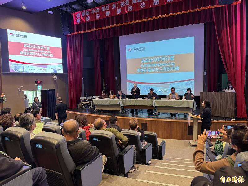 高鐵延伸屏東計畫今(10)日上午在高雄舉辦環境影響評估公開說明會,會中不少高雄車站周邊居民表達強烈憂慮,指出鐵路地下化工程歷經20年施工,好不容易迎來發展契機,如今又將面臨高鐵工程的衝擊,另也不滿環評只做工程對貓頭鷹等生態棲地的影響,卻沒有「人的影響評估」。高鐵延伸屏東計畫將從高雄左營站延伸至屏東台糖六塊厝農場,全長26.2公里,並新建高雄站(地下)、屏東站(高架)及1處維修基地,路線行經高雄市左營、鼓山、三民、鳳山、鳥松、大寮、大樹區及屏東市等8個行政區,其中,左營到大寮段為地下段,大寮至屏東則為高架段。