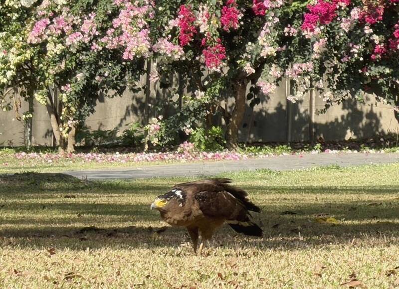 台南山上花園水道博物館難得的生態紀錄再+1,平時都在上空翱翔的大冠鷲,竟也降落草地覓食,珍貴畫面被捕捉到,工作人員一度誤以為火雞,靠近觀察後,原來是保育類猛禽,驚喜不已。館方強調,園區重視保育,維護綠地時,都沒有使用除草劑,提供友善的天然環境,讓鳥類可以安心覓食,大冠鷲也不例外,只是之前常見在高空盤旋,或棲息於樹幹上,伺機捕獵小動物,直接降落,工作人員首次遇到。