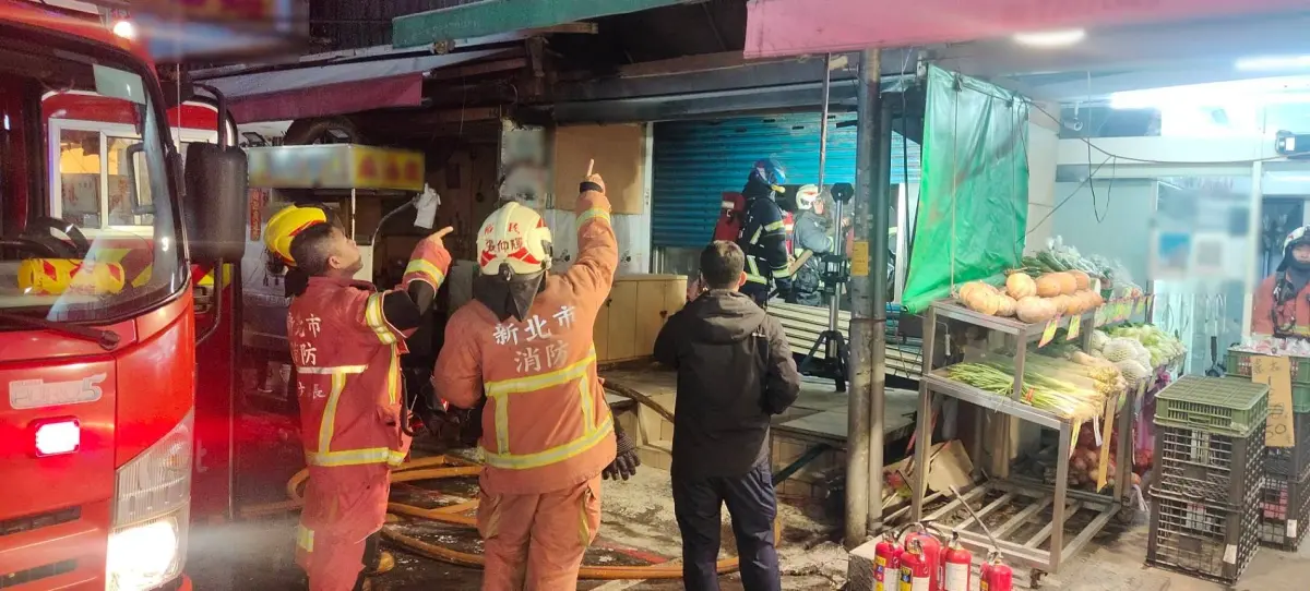 新北市今(16)日發生一起火警,晚間7時許新莊區四維路上一處連棟鐵皮屋,其中一戶一樓雜貨店突然起火冒出濃煙,消防局獲報立刻派遣人車趕赴現場,消防人員到場佈水線...