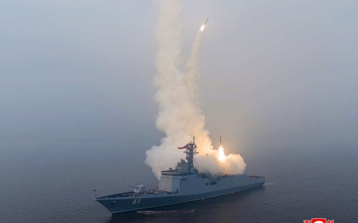 在美以發動「史詩憤怒行動」(Operation Epic Fury)攻打伊朗的同時,北韓官媒《朝中社》報導,領導人金正恩在3月3日、4日,連續2天親赴南浦造船廠,登上即將服役的5000噸級新型驅逐艦「崔賢號」,觀摩艦上戰略巡航導彈試射成功,並檢查官兵訓練情況。官宣表示,金正恩高度評價該艦性能,強調這