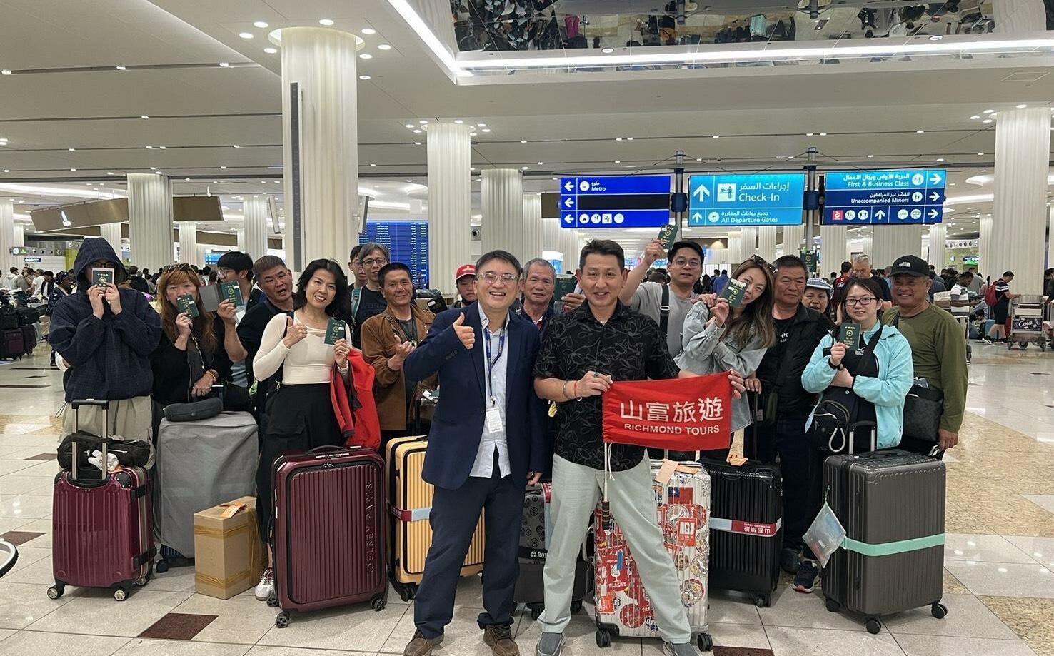 因中東局勢影響,部分國人滯留海外。為表達政府關懷並協助返國事宜,我國駐杜拜辦事處總領事陳俊吉於4日晚間11時偕副領事柴介休前往杜拜國際機場,慰問即將離境返台的受影響國人。