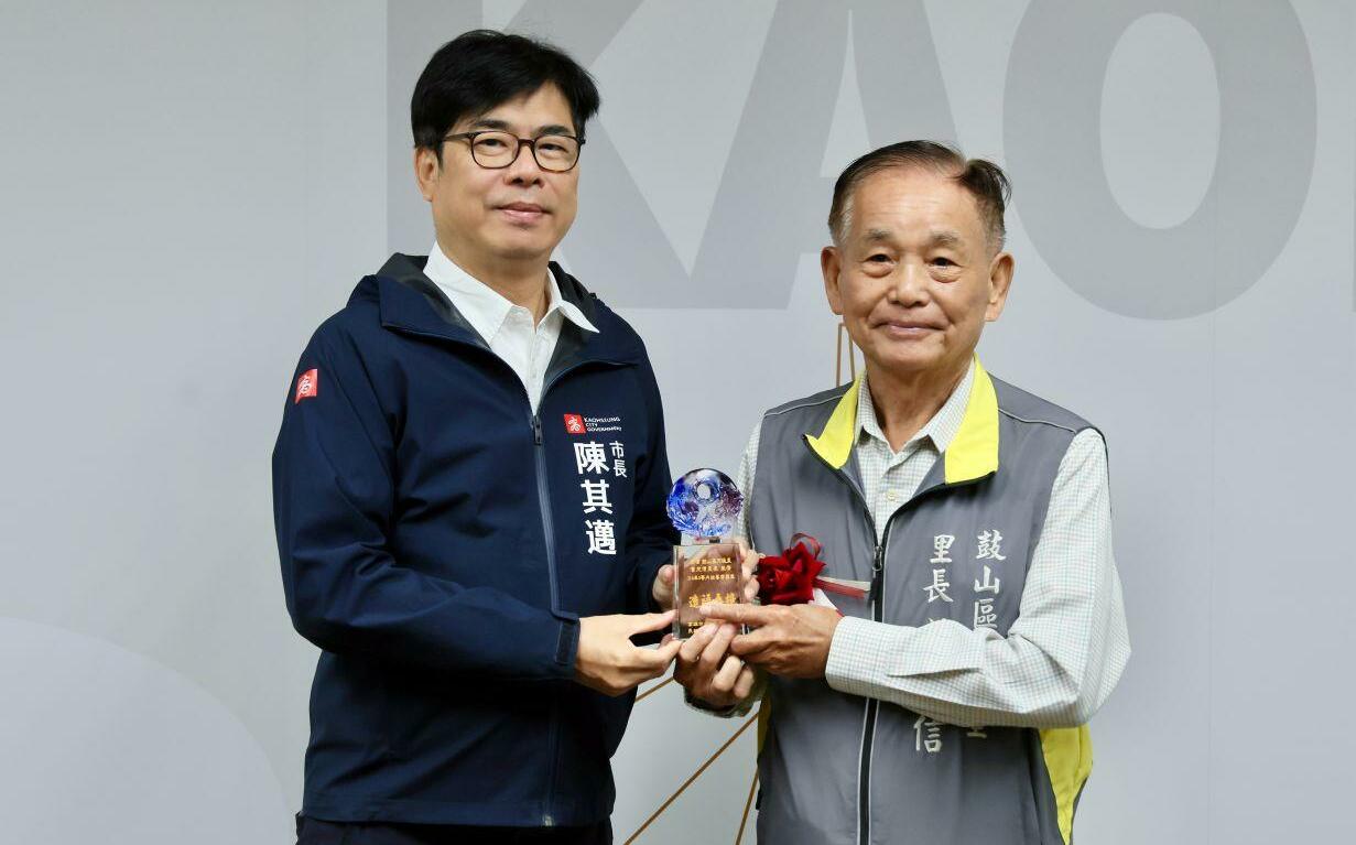 高雄市政府今(10)日於市政會議辦理一場簡單隆重的頒獎儀式,市長陳其邁親自為榮獲「114年內政部三等內政專業獎章」的20位里長頒發琉璃獎座,除表達誠摯的敬意與肯定,並鼓勵里長們再接再厲,與市府持續為市民的福祉打拼。受獎里長的服務年資均超過30年,貢獻半甲子的青春歲月,以服務里民為生活重心,長年深耕基