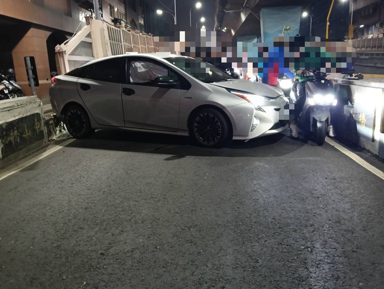 【記者江孟謙/新北報導】新北市三重區中山橋下匝道往中華路方向,今天(16日)晚間7時許發生小客車自撞車禍,整台車將車道堵住,所幸無人受傷,詳細肇事原因尚待釐清中。