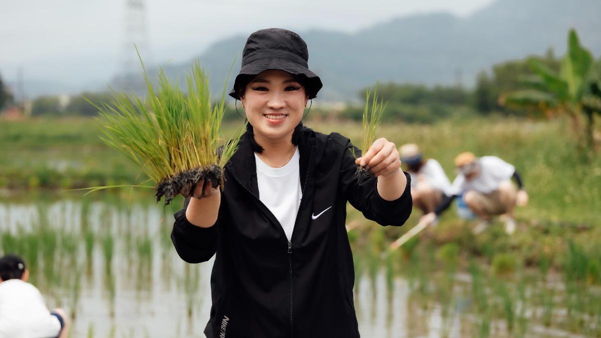 韓國「港點女王」鄭智善今(11)日和《開火開伙》主持楊銘威、Dora謝雨芝,一同響應2026年世界地球日「Our Power, Our Planet」精神,參加TVBS GOOD舉辦的「地球好室友」年度志工日活動,與TVBS志工一同下田體驗插秧,以實際行動實踐環境保育與永續發展。