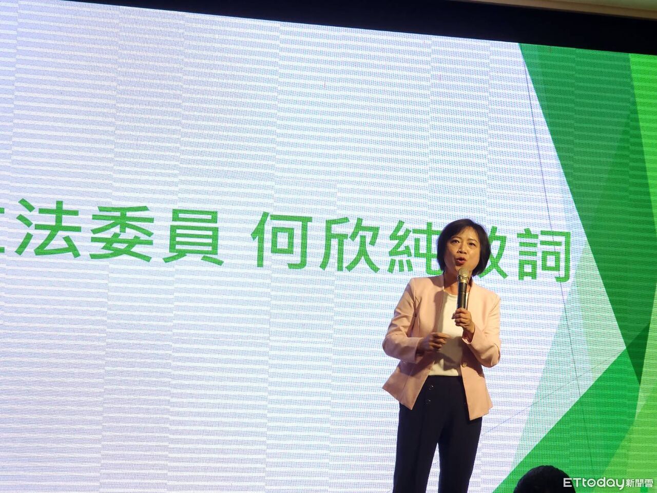 台中市議會民進黨團今舉行幹部交接,台中市長盧秀燕,以及民進黨台中市長候選人、立委何欣純也受邀到場,兩人先後致詞。何欣純表示,未來也希望由她來發放現金,讓全民、所有台中市的市民,可以共享台中市推動下來的經濟成果。