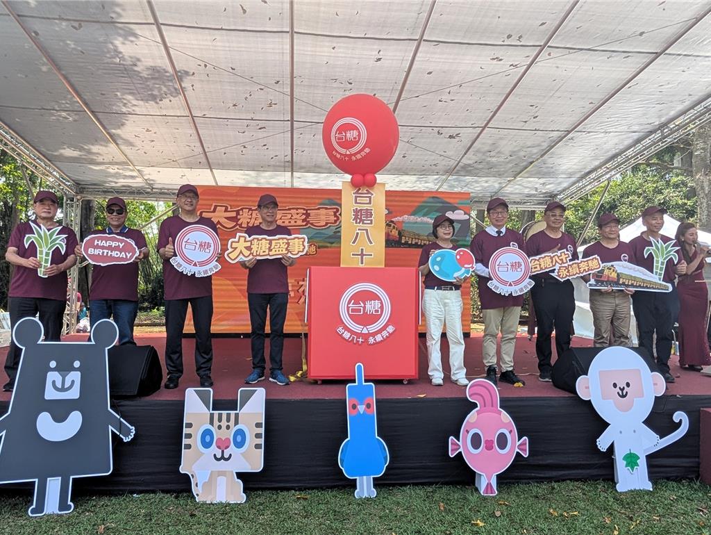 台糖公司為慶賀成立80年,11日於台南柳營尖山埤渡假村舉辦「大糖盛事」生日派對,平時分散在台灣各地打拚的台糖人匯聚一堂,動員500名員工齊心排列出「台糖八十」的壯闊字樣,台糖董事長吳明昌也偕同與會貴賓種下象徵台糖韌性的甘蔗,代表「種蔗製糖、永續薪傳」,宣示台糖將在永續發展的軌道上持續奔馳,以邁向下一個甜蜜的里程碑。