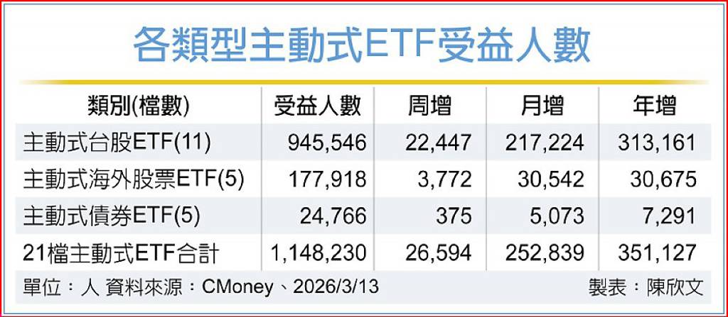 據集保戶股權分散最近統計資料顯示,截至上周五(13 日),無視大盤震盪劇烈,83 檔台股ETF受益人數上周增加 315,603 人,總人數來到 13,754,093 人,連續七周創新高,統計今年來已增加 1,580,603 人。進一步觀察上周台股ETF受益人增加前十名:群益台灣精選高息(00919)