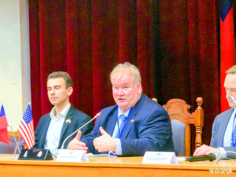 By Chen Yun and Jake Chung / Staff reporter, with staff writerThe Republican Study Committee (RSC) delegation recognizes that the security threats that Taiwan faces are real and firmly believes in the principle of “maintaining peace through strength,” US Representative Zachary Nunn said at a meeting with President William Lai (賴清德) at the Presidential Office in Taipei yesterday.