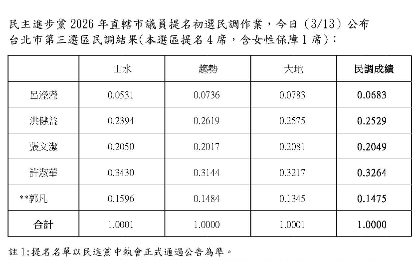 民進黨台北市議員初選進入尾聲,今晚間進行松山信義選區電話民調,此次松信選區競爭激烈,獲立委王世堅支持的呂瀅瀅在選前爆出霸凌黑函,掀起外界關注。在松信在地經營20年的資深議員許淑華,今年宣布競選連任後,今也透過臉書向支持者喊話支持,盼能有機會延續服務地方。