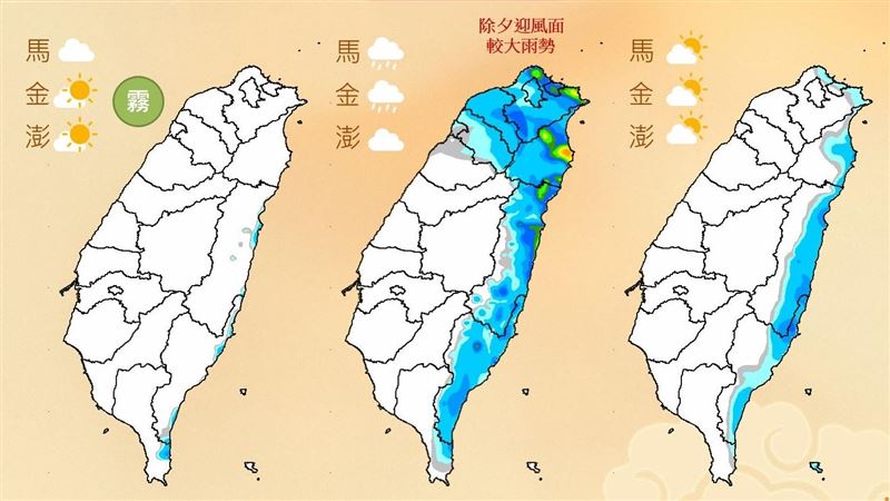 把握明天小年夜好天氣!中央氣象署預報,明天南部高溫甚至可達28度到30度,但除夕當天上午起,北部就會因鋒面和東北季風報到,轉為溼涼天氣,並持續到初一(17日),初二起才會慢慢回暖。氣象署預報員劉沛滕表示,明天天氣與今天類似,各地大多為晴到多雲的好天氣,但要提醒日夜溫差大,僅恆春半島有局部短暫陣雨,東部、東南部地區有零星短暫雨,南部如高雄、屏東白天高溫甚至可達30度。