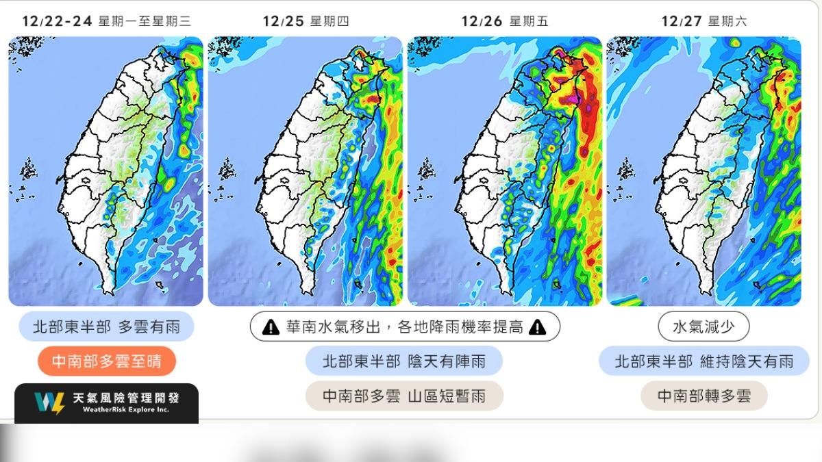 明天水氣會再減少一些!明天天氣各地主要是晴到多雲,僅迎風面東北部及東部為多雲偶零星短暫雨,隨著陽光露臉氣溫也明顯回升,大台北地區及南部甚至感覺會有點熱,不過氣象專家提醒,西部地區日夜溫差明顯,局部甚至只有12度左右低溫,早出晚歸仍要多多保暖。此外,本週有一波更明顯的冷空氣將至,屆時中部以北及東北部地區又要下探13-15度。