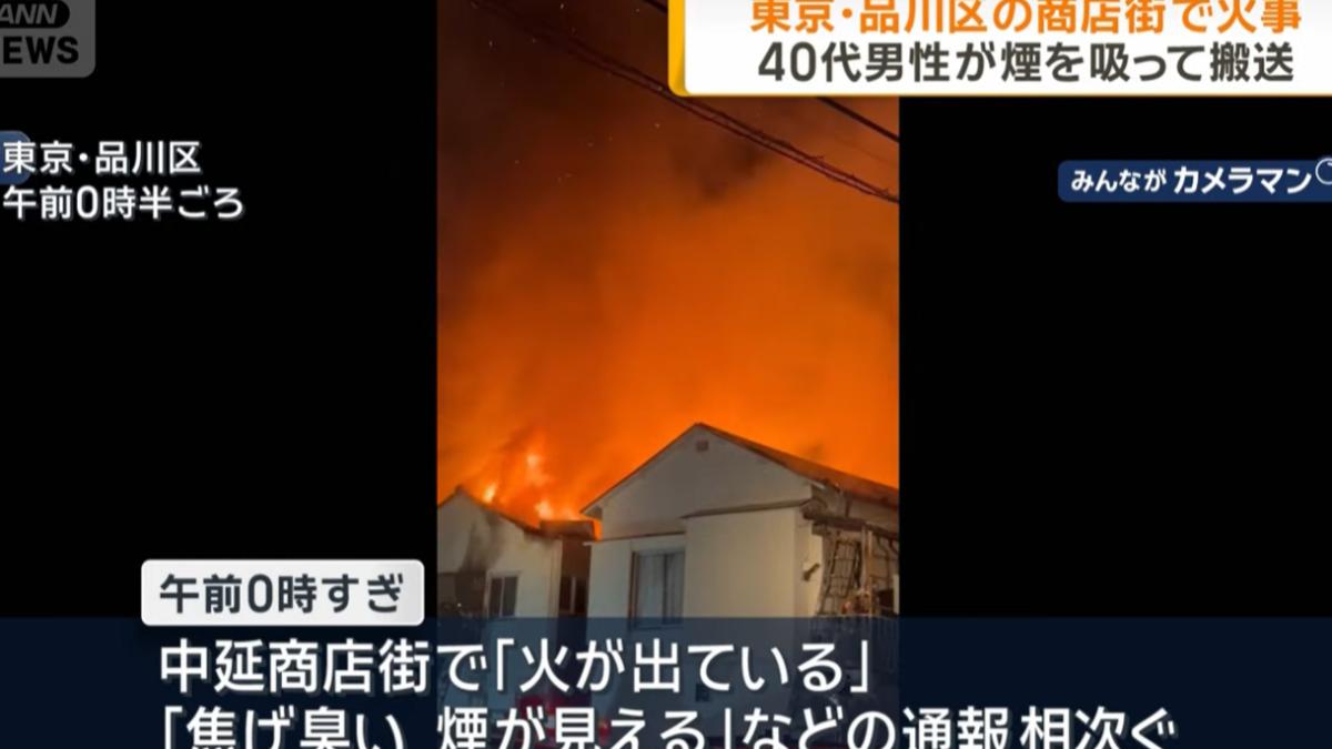 日本東京都品川區一處拱廊商店街「中延商店街」今天發生火災,導致1人受傷,約35輛消防車到現場救火,消防單位在今晨撲滅火勢。