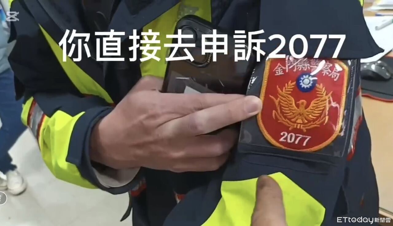 近日網上流傳一段金門爭議影片,一名身穿印有「POLICE」及背章編號「2077」警察防水透氣雨衣的男子,因態度強硬且嗆民眾「去檢舉2077」,引發外界質疑冒充警察。對此,金門區漁會與警方先後做出澄清,透露當天是因有民眾不符合資格卻想租借倉庫,在場鬧事,漁會才主動報警處理。