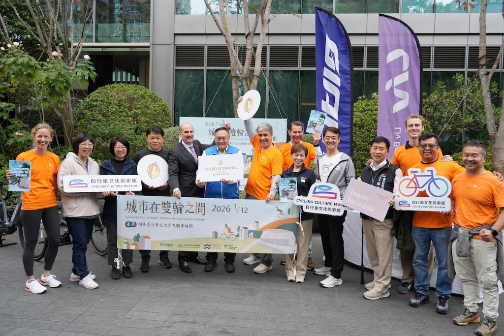 以騎乘取代傳統參訪 臺荷代表實地體驗城市自行車文化 此次活動由捷安特旅遊專業團隊帶隊,自臺中勤美洲際酒店出發,沿草悟道騎乘,行經綠美圖等重要城市節點,最終抵達自行車文化探索館。活動開場由荷蘭在台辦事處代表浦樂施Bas Pulles致贈《A Cyclist’s Guide to Taiwan》一書予與...