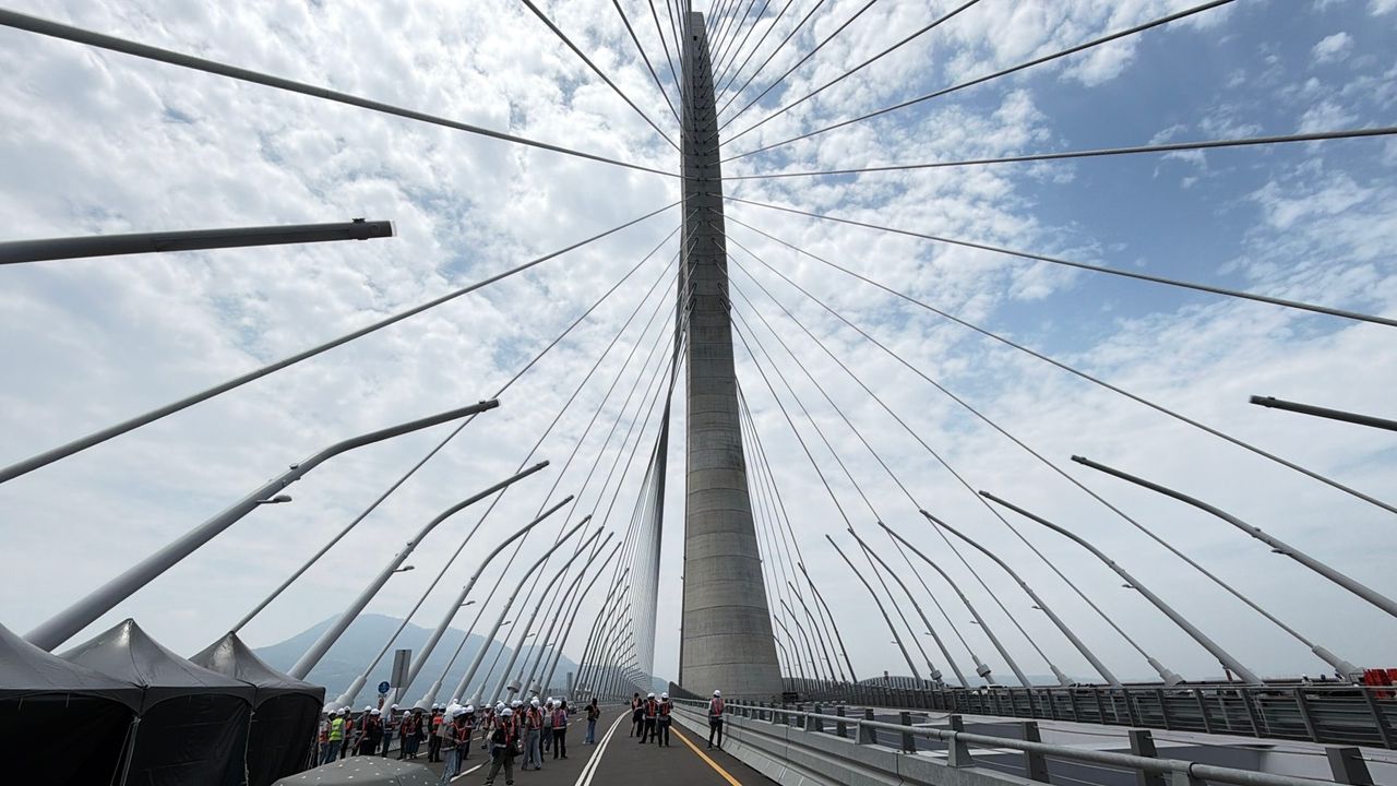 昨(26)日淡江大橋開放遊客上橋引起關注,加上晴空萬里的天氣,吸引萬人遊行畫面壯觀。前中央氣象局長鄭明典,轉發從淡江大家俯瞰淡水河的夕陽美景,畫面中如蛋黃般的夕陽,落入被染成橘紅色的水平面時,下緣彷彿有其他太陽接住,呈現酒杯形狀。鄭明典解釋,這是「海市蜃樓」現象。受到世界注目的淡江大橋,即將於5月1