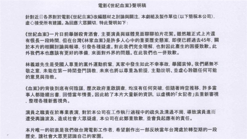 電影《世紀血案》改編自台灣戒嚴時期、前議員林義雄的家族命案,近來掀起爭議,演員群李千娜楊小黎、簡嫚書等於本月1日出席殺青記者會,受訪言論也被翻出,當中李千娜...
