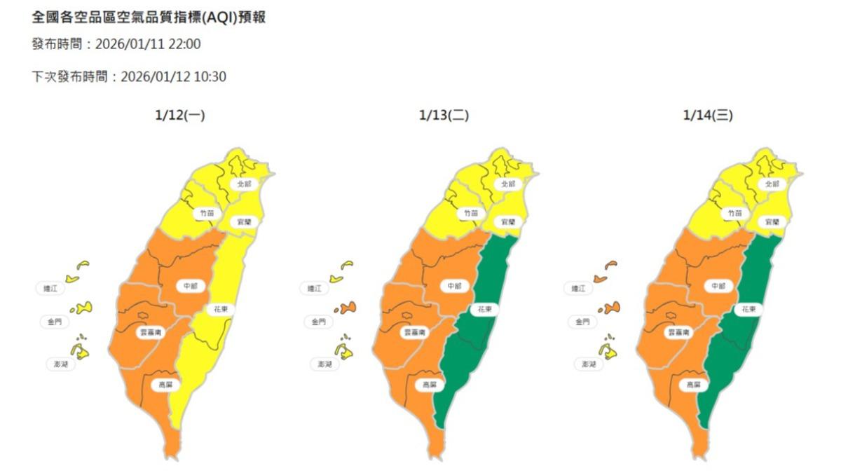 近期呼吸道敏感族群要特別注意了!隨著大陸冷氣團南下,東北風挾帶境外污染物移入台灣。根據環境部監測,目前西半部及離島地區已出現大規模「橘色提醒(對敏感族群不健康)」等級。未來一週風場改變容易導致污染物累積,全台空氣品質較差,民眾出門務必戴好口罩。