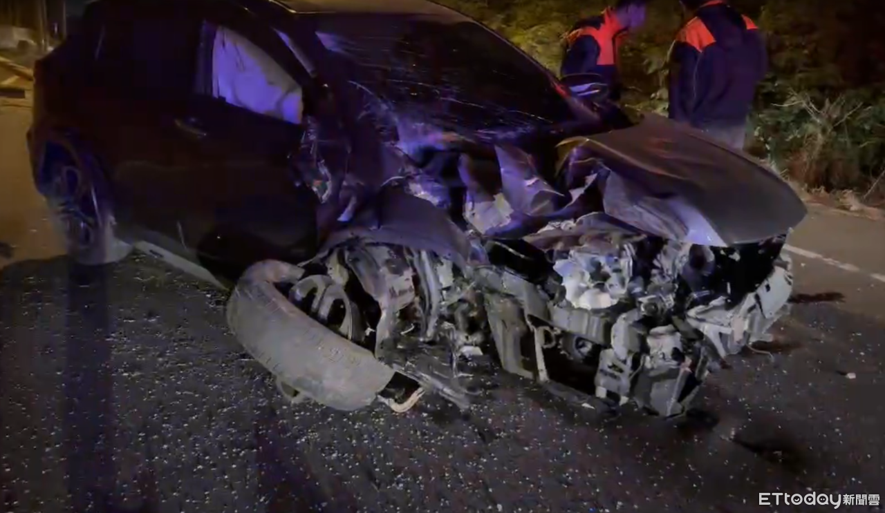 雲林縣虎尾鎮穎川里防汛道路今(11)日晚間接近9點驚傳巨大撞擊聲響,嚇壞附近居民。經查,一輛黑色休旅車行經該路段時自撞電線桿,電桿當場斷裂倒地,車頭嚴重毀損,現場一片狼藉。