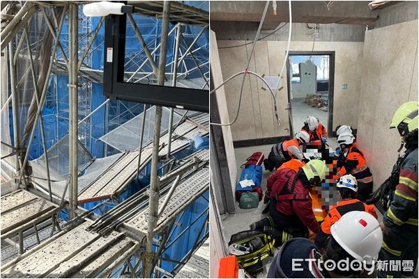 台北市信義區一處工地今天發生工安意外,警消獲報到場處理發現,林姓工人誤以為鷹架有設扶手而攙扶,不慎從12樓外側鷹架跌落至7樓處,身體多處擦挫傷、意識清醒,送醫治療。