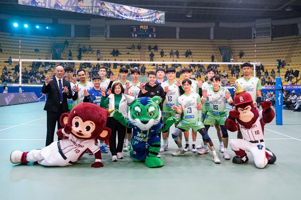 【李家穎/綜合報導】台灣職業排球聯盟(TPVL)進入下半季賽程,臺中連莊11日於主場國立臺灣體育運動大學進行例行賽賽事。賽前更邀請福爾摩沙夢想家籃球隊當家球星林俊吉擔任開球嘉賓,為主場注入滿滿熱鬧氛圍。最終連莊與台鋼天鷹打出5盤大戰,最終連莊以 3-2(25-22、25-19、29-31、23-25、15-11) 收下勝利,成功捍衛主場。