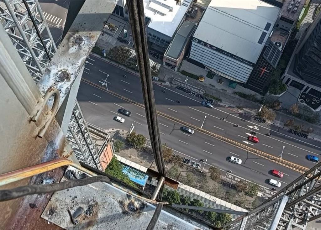 高雄左營區富邦凹子底聯合開發案11日下午發生意外,一塊巨大金屬片無預警從工地高樓層飛落,並砸中停靠在附近路邊的機車,多輛機車倒地受損,幸好無人傷亡,熱心民眾趕緊提醒周邊其他人不要靠近;高市工務局獲報後立