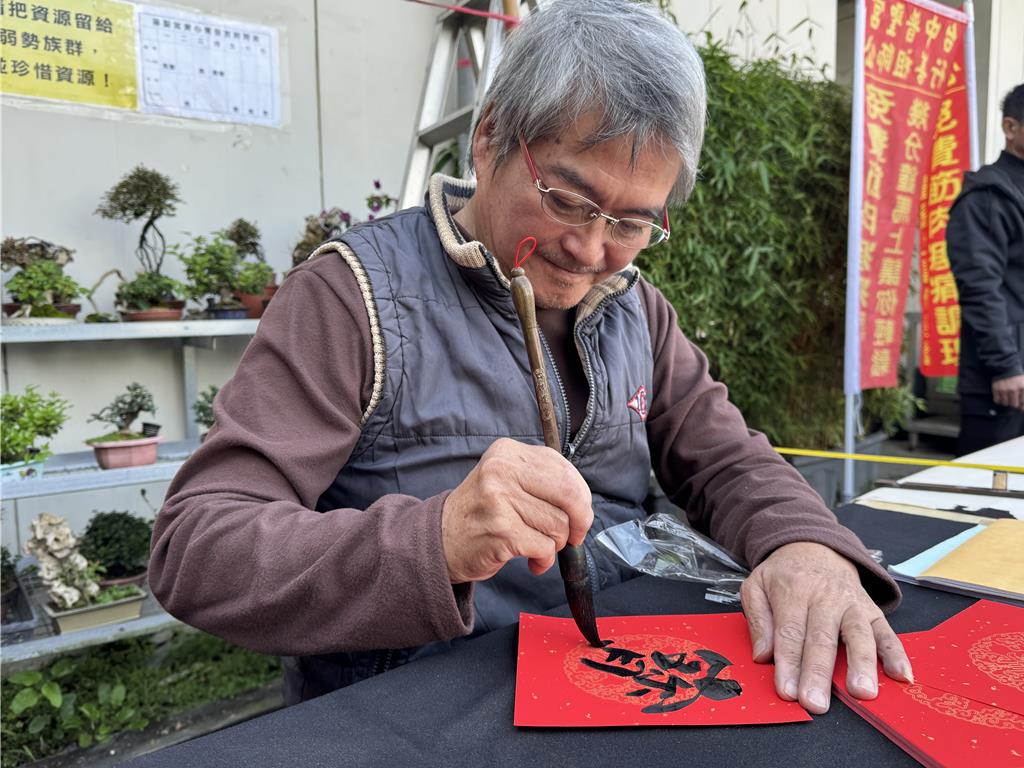 台中市東區普聖宮11日下午攜手正和書院舉辦「揮毫贈春聯」公益活動,邀集多位長期投入公益的書法老師齊聚廟埕揮毫,將滿滿祝福化為一幅幅春聯,免費贈送給前來的民眾,在歲末寒冬中,增添濃濃人情味。普聖宮自民國10