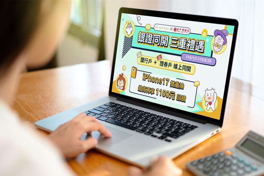 台中銀行表示,持續推動數位金融,今年延續銀證整合服務,台中銀行Lolly Bank再度攜手台中銀證券,推出全新升級的「銀證同開,三重禮遇」行銷活動,即日起至2026年6月30日止,同時開立銀行與證券帳戶,即可享有開戶回饋好禮。 台中銀行說明,活動期間內凡於線上同步成功開立「Lolly Bank數位帳...